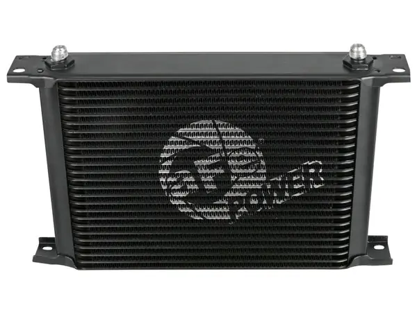 This BladeRunner Oil Cooler uses a durable brazed 25-row all-aluminum stacked plate construction that allows for greater efficiency and lower pressure drop than a standard tube-fin design. Designed to work in-line with your vehicle’s original equipment. Provides lower transmission oil temperatures to reduce transmission wear and extend life of oil viscosity. The BladeRunner Oil Cooler kit makes installation simple with direct-fit mounting brackets, stainless steel hardware, and leak-proof AN connections. No cutting or alteration of factory hardware is required. Features a durable black finish with a laser-etched aFe POWER logo on the front and includes black-anodized billet aluminum AN fittings for a sleek appearance.