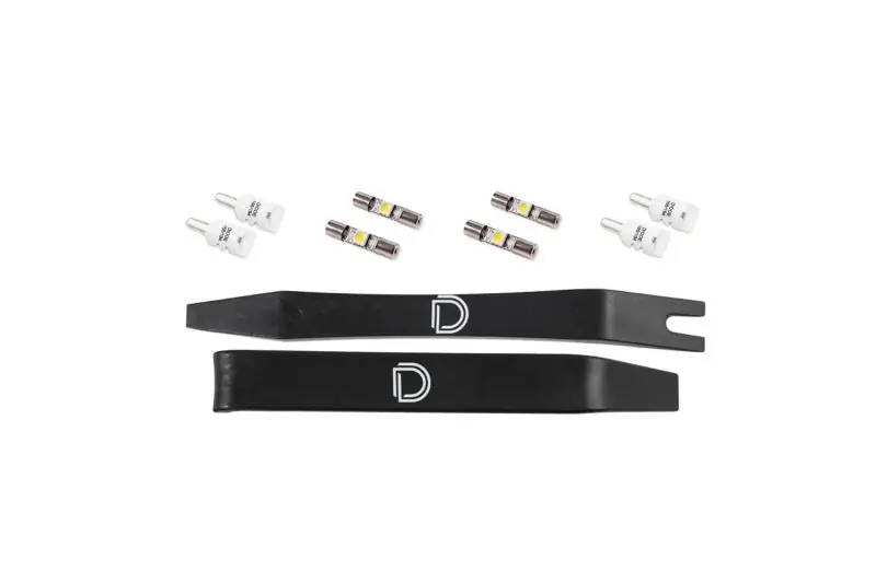 FeaturesAdd a modern, cool white appearance. Increased output with LED bulbs. Includes LED replacements for all interior incandescent bulbs. Plug-and-play, simple installation.Overview Increase your light output and add a modern appearance to your vehicle with our Interior LED Conversion Kit compatible with Ford Raptor! Factory interior lighting leaves much to be desired with a dated appearance and lackluster performance. By replacing your outdated halogen bulbs with LEDs, you’ll give your vehicle a more modern appearance, and significantly increase the output of your interior lighting. Modern Appearance. The LED bulbs included in this kit feature a 6000K true cool white output without any blue – just like factory installed LEDs. This provides a serious upgrade in the overall appearance of your interior when compared to the factory halogen bulbs. All Diode Dynamics LED bulbs are tested in-house, so you know you’re getting consistent performance. Brightness. This kit is available in two levels of brightness, Stage 1 and Stage 2. Stage 1 gives your interior an ultra-modern appearance, while providing a slight increase in output compared to your factory lighting. Stage 2 steps things up with a significant increase in overall light output throughout the interior. Plug-and-Play. The LED bulbs included in this kit feature plug-and-play connections for simple installation. Our bulbs are not constructed with cheap connectors, so you don’t have to worry about them coming loose and falling out. Simply remove your factory bulbs and these will fit right in place! Two plastic trim removal tools are included to assist with installation. If any bulb does not light up when you turn it on, simply remove the bulb, rotate it 180 degrees and reinstall.