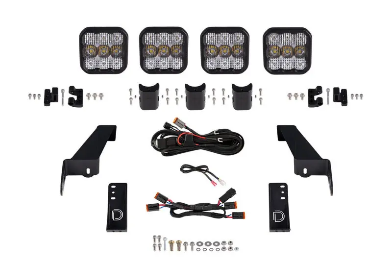 Diode Dynamics Jeep JL SS5 4-Pod CrossLink Grille Lightbar Kit Pro – White Combo Professional Grade